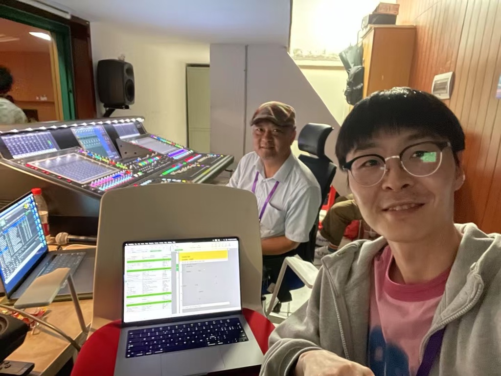 按照以往经验,灯光安装与调试往往需要4-5小时。但在琼花大剧院,我们还没正式开始,剧院已经根据灯位图把所有灯杆、灯具提前排布完成。导演组到场确认后直接执行——最终不到2小时,全部安装、调试、调整到位,并达到交付标准。